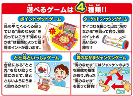 ・サイコロを振って出た”海のなかま”を狙って釣り、獲得点数の高い方の勝ち。