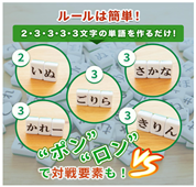 ・言葉を揃えるだけでなく、より麻雀に近く「ポン」「ロン」などのルールも採用され、言葉作りを楽しめます。